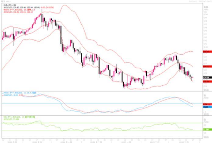 美元兑日元过去几个交易日内一直处于明显下行趋势中。日线图上的各类技术指标继续向下延展,显示日元的强势未有歇息迹象。如果下方130整数关口有效下破,卖家将锁定前低127.23水平。