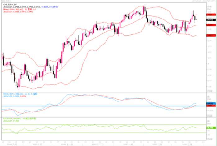 欧元兑美元尚能保持在布林带中轨之上,技术指标亦未显现拐头转向痕迹。近期若能保持在1.07之上震荡整理,后市或可有望延续上行态势。