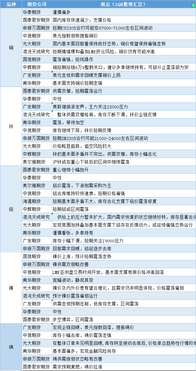 标题:期货公司观点汇总一张图:3月28日有色系(铜、锌、铝、镍、锡等)