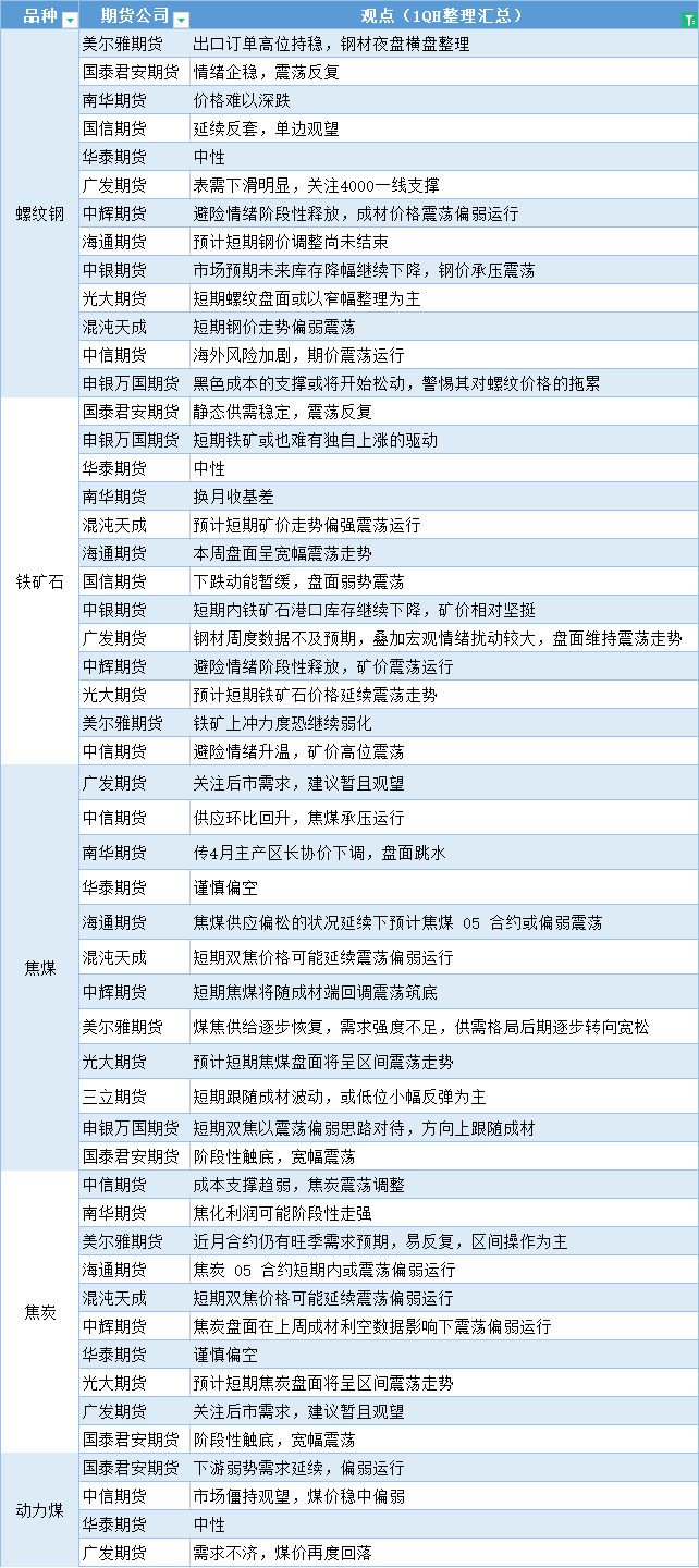 期货公司观点汇总一张图:3月28日黑色系(螺纹钢、焦煤、焦炭、铁矿石、动力煤等)