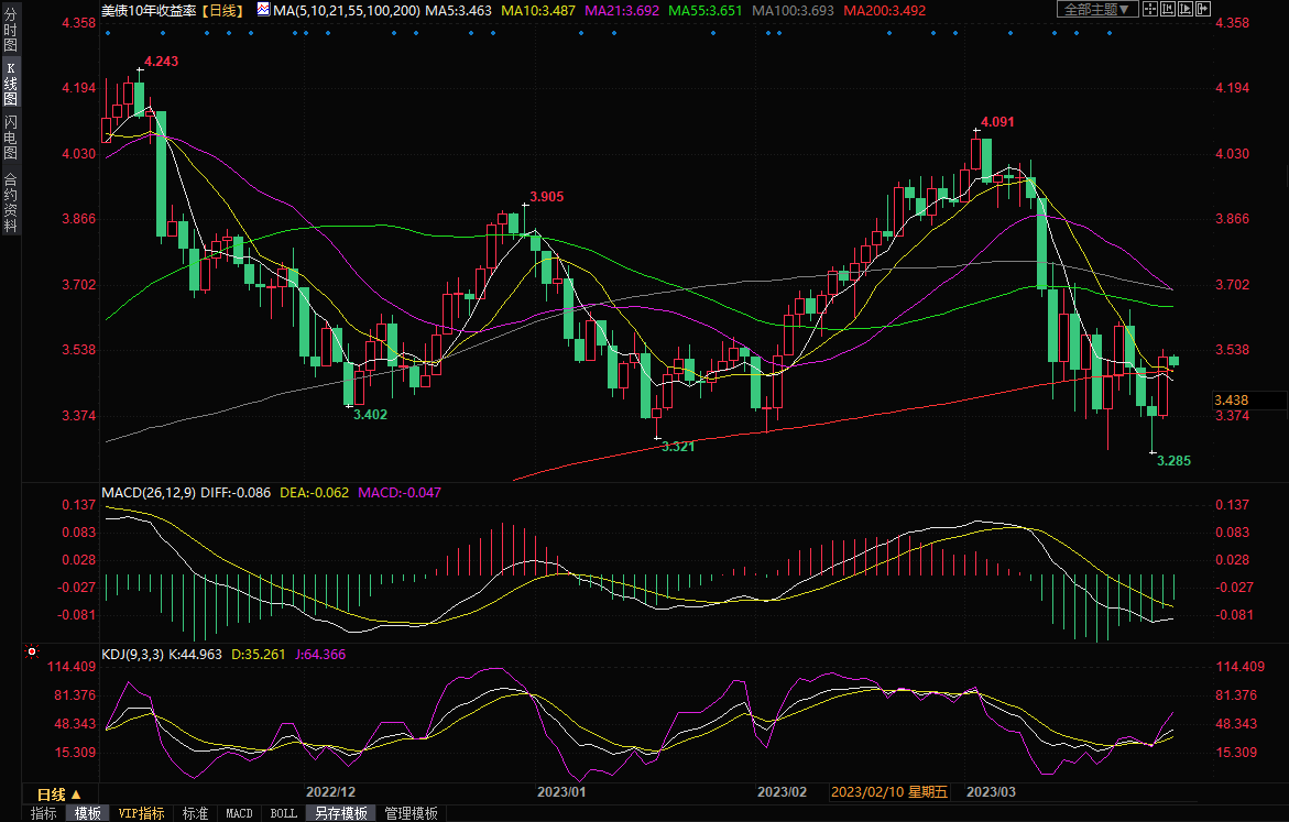 10年期国债收益率周一上涨15个基点,至3.526%。从上周五达到的六个月低点3.285%上升,但仍低于10月21日的15年高点4.338%。两年期国债收益率周一上升23个基点,至4.008%,高于上周五达到的六个月低点3.555%,但低于3月8日达到的近16年高点5.084%。