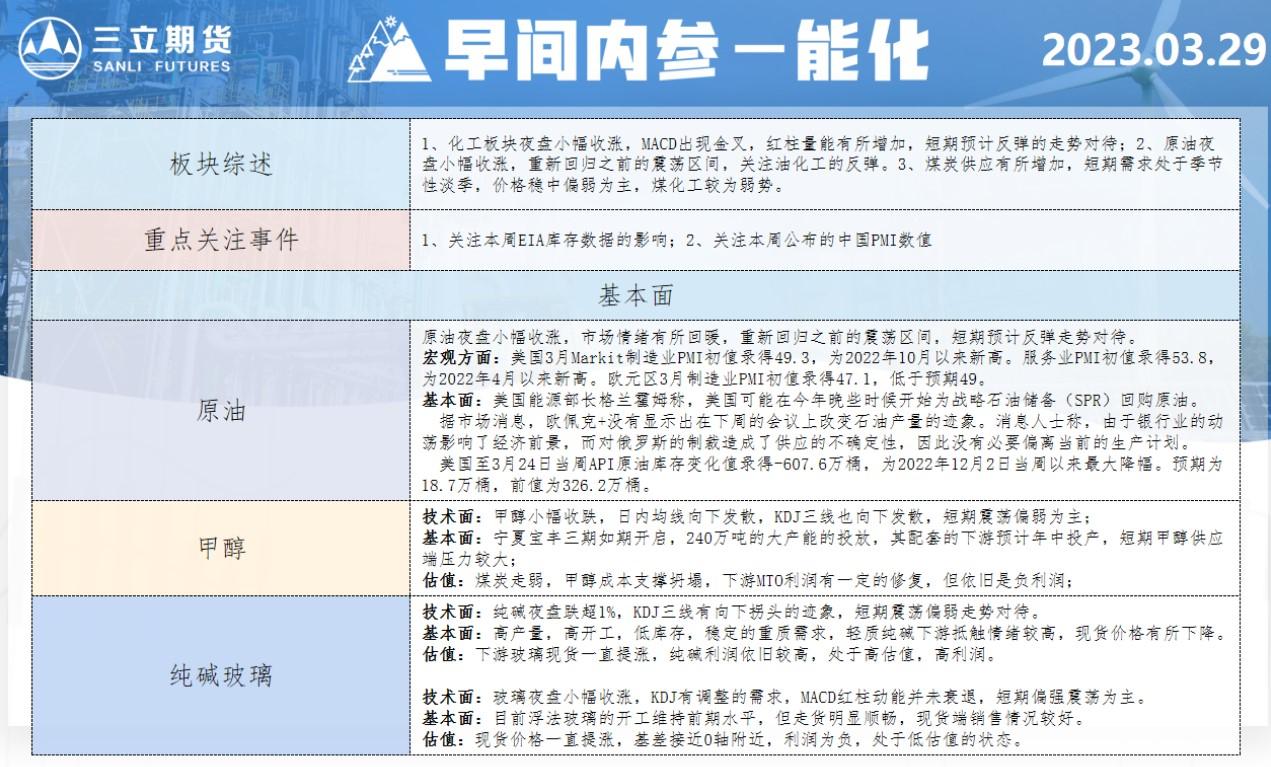三立期货早间内参显示,原油短期预计反弹走势对待;甲醇短期震荡偏弱为主;玻璃短期偏强震荡为主。