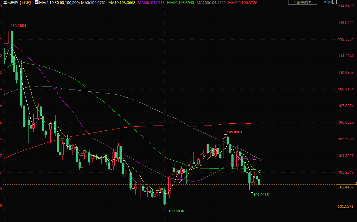 美元兑一篮子货币周二连续第二天下跌,接近上周四触及的101.91的近七周低点,对银行业危机的担忧有所缓解,投资者恢复了对高风险货币的胃纳。