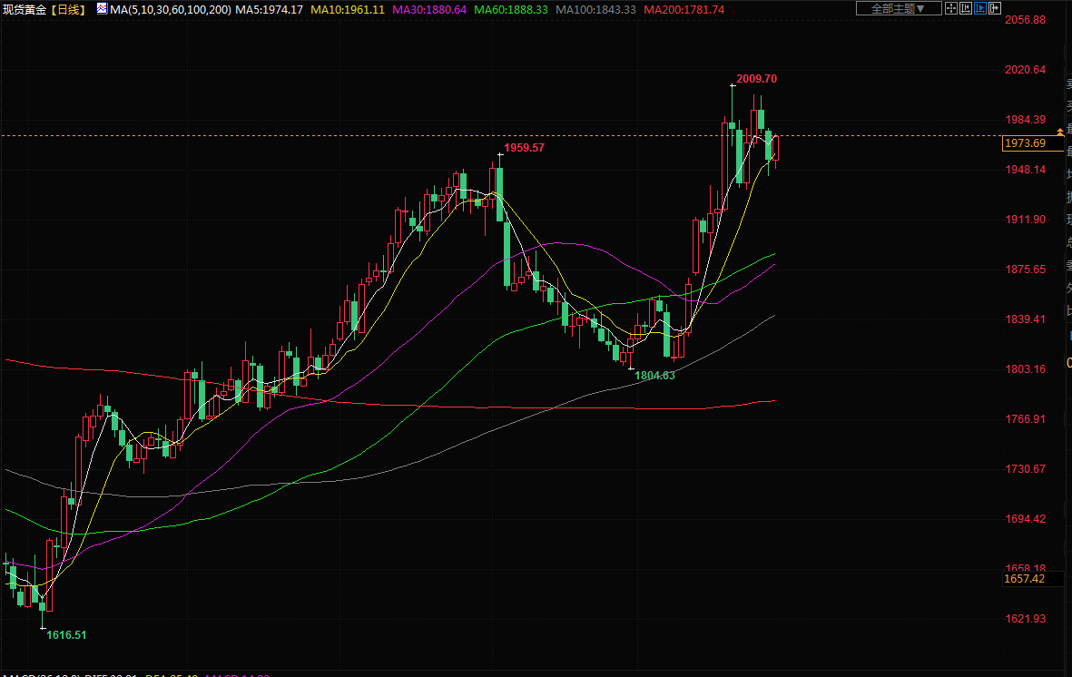 商品收盘情况:美国期金收高1%,报1973.50美元;