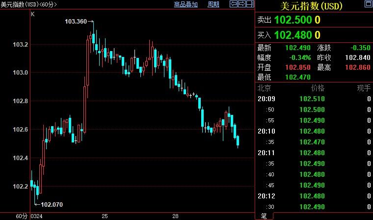 美元指数下跌0.37%至102.486。