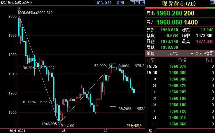 现货黄金短线下看1938美元
