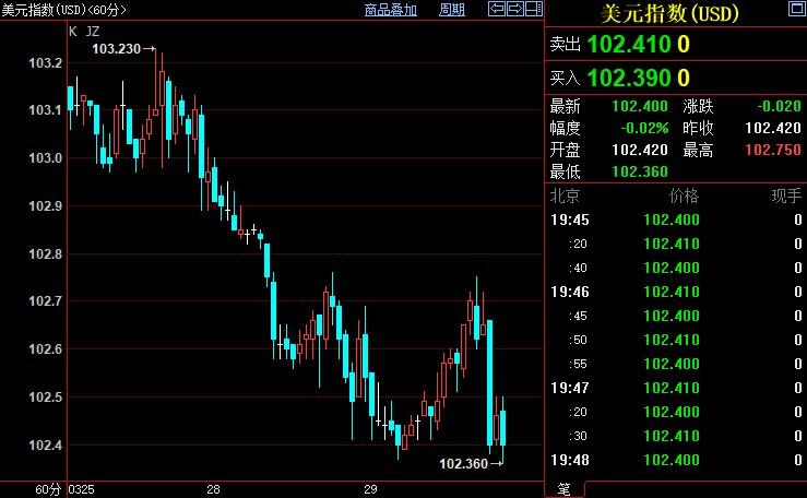 美元指数下沉0.02%至102.408。