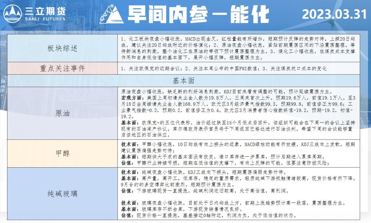 三立期货早间内参显示,原油短期预计延续震荡为主;甲醇建议震荡偏强走势看待;玻璃短期震荡整理为主。