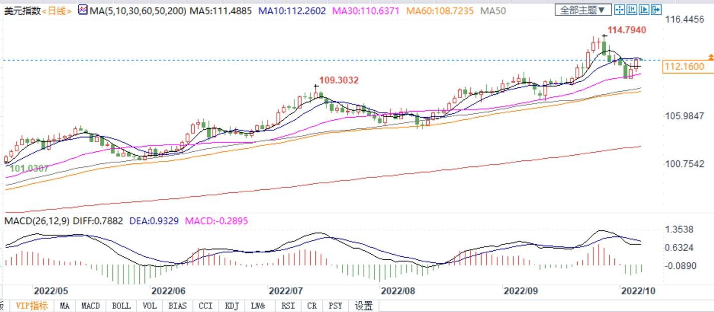 美元指数报112.22。