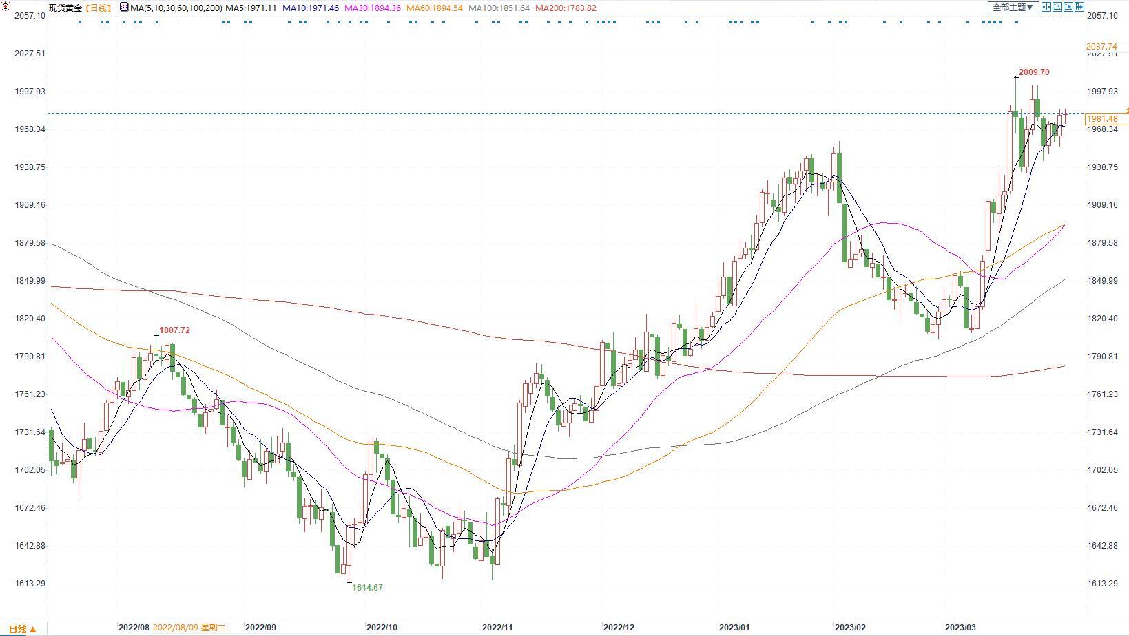 汇通财经APP讯——周五(3月31日)当周金价维持震荡走势。欧美银行业危机缓和限制了金价进一步上涨,但全球经济衰提的担忧情绪,以及地缘局势和中国经济良好的前景,都支持了实物金买盘,长期支持金价走势。