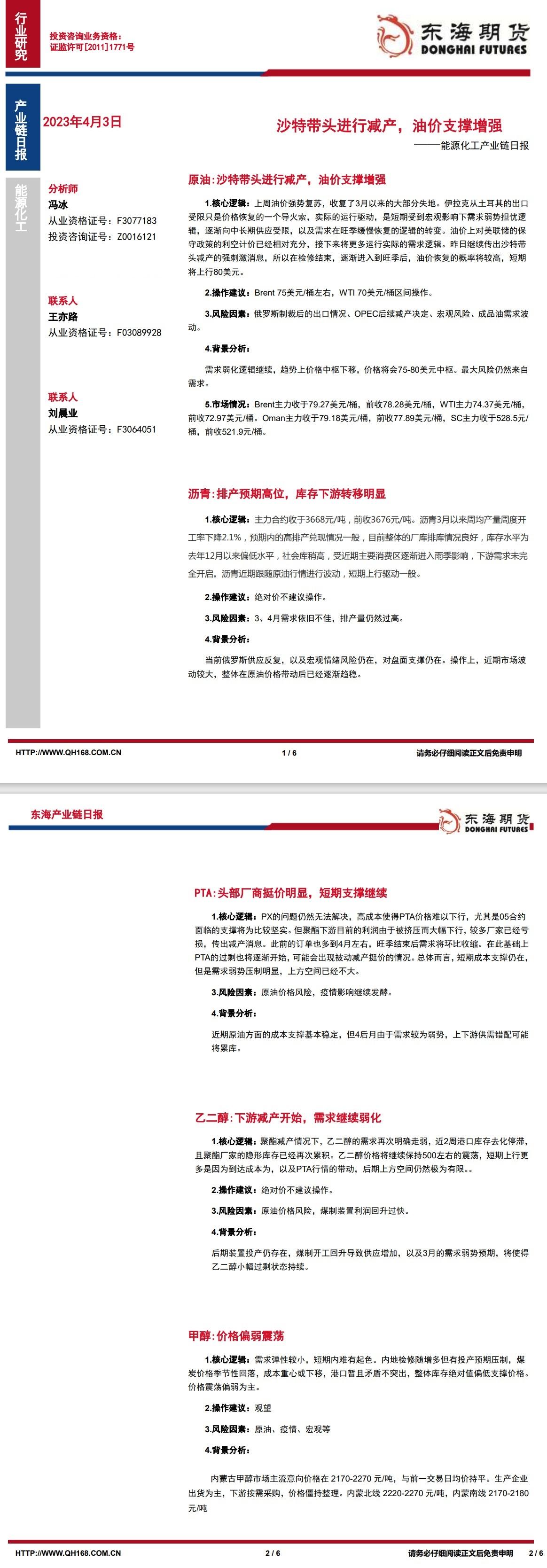 标题:【东海期货4月3日产业链日报】能化篇:沙特带头进行减产,油价支撑增强