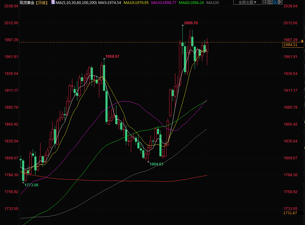另外,在信贷条件收紧的情况下,美国3月份的制造业活动下滑至近三年来的最低水平,这也使指标10年期美债收益率的跌幅扩大。盘中早些时候,黄金刷新了四个交易日的低点1949.55美元。