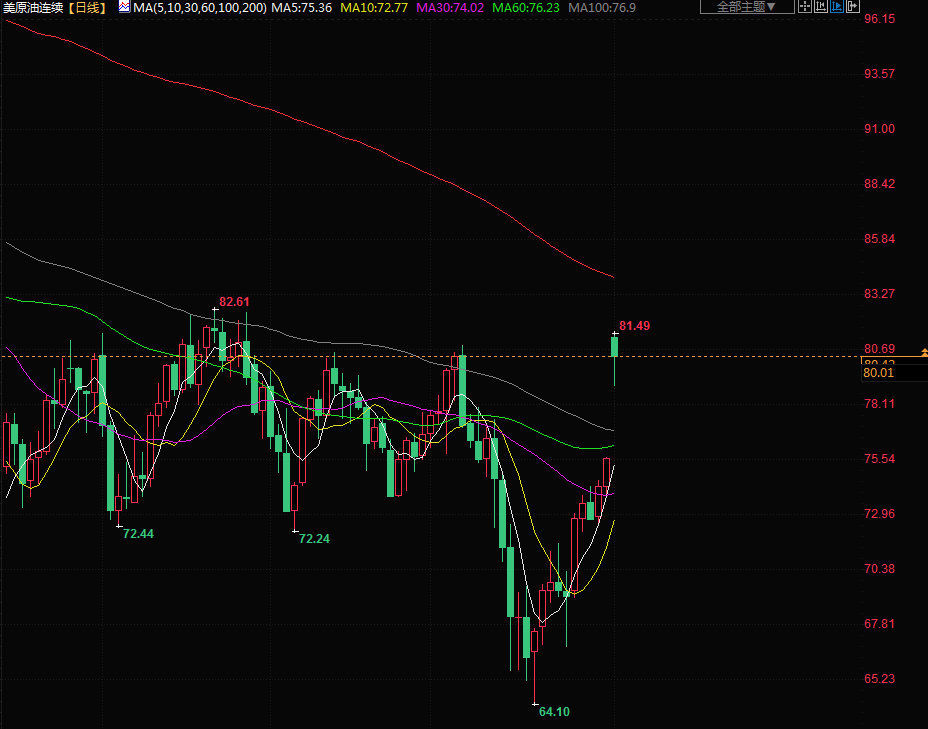 商品收盘情况:布伦特原油期货收高6.3%,结算价报每桶84.93美元,此前触及3月7日以来最高的86.44美元。美国原油期货结算价上涨6.3%,报每桶80.42美元,盘中稍早曾触及两个月高位。美国期金报收于2000.40美元,上涨0.7%。