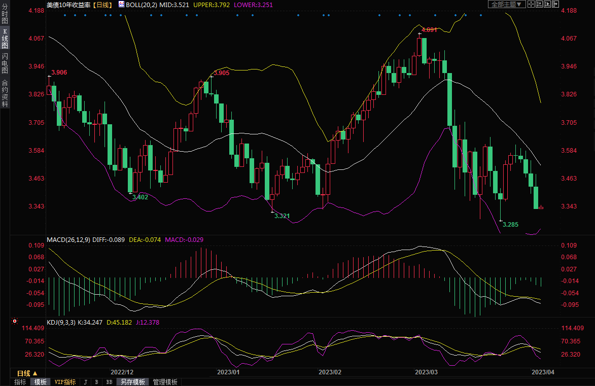 自3月10日硅谷银行倒闭以来,两年期美债收益率下降了100多个基点,将其推到了自3月中以来一直固守的4%左右宽幅震荡区间的低端。
