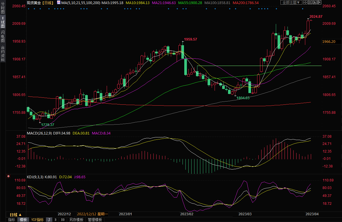 整体来看,虽然美联储官员仍重申将进一步加息,但就业数据已经出现降温迹象,市场对美联储进一步加息预期降温,对年内降息预期显著升温,拖累美元和美债收益率表现,而且欧元区生产者物价指数连续第五个月下降,降低了欧洲央行的加息压力,英国央行也可能会比市场预期更早的降息,这些都给金价提供上涨动能。金价在顶破2000关口后,技术面看涨信号也显著增强,后市有望延续涨势,甚至是顶破历史高点2075附近阻力。北京时间09:18,