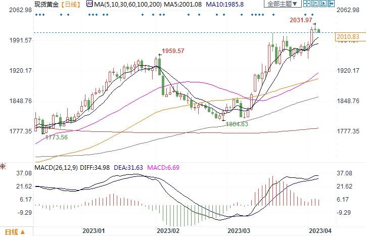 Ciana在报告中表示:“黄金的日线图显示了一个看涨的延续模式,被称为三角旗(一个小三角形)。这在2023年4月4日被证实,上涨超过2000美元/盎司。技术理论表明,这种模式形成了趋势中期,因此
