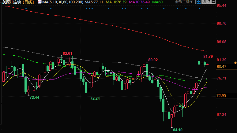 美原油交投于80.47美元/桶附近;油价周三波动不大,尽管美国原油和燃料库存的降幅大于预期,但市场权衡经济前景恶化与美国原油库存下降的预期以及OPEC+产油国的减产计划;交易员们将从本周公布的美国非农就业数据中寻找更广泛的经济趋势线索,因疲软经济数据引发了对需求的担忧。