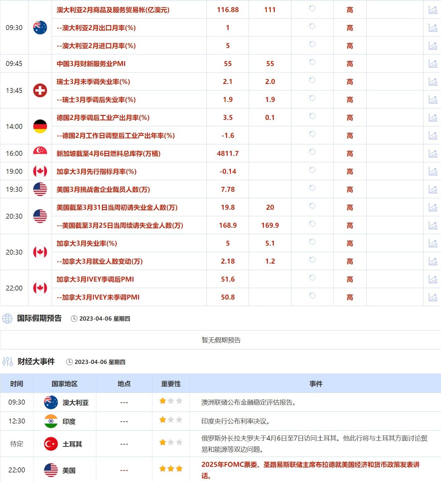 后续及时更新的财历数据请关注:【汇通网4月6日财经日历】