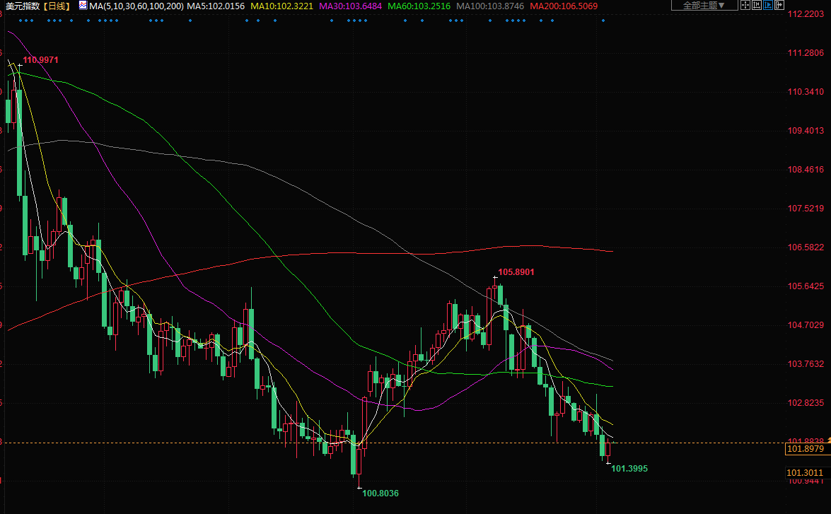 美元指数上涨0.4%,至101.87,受美元兑欧元的涨势带动,欧元下跌0.5%,至1.0906美元。