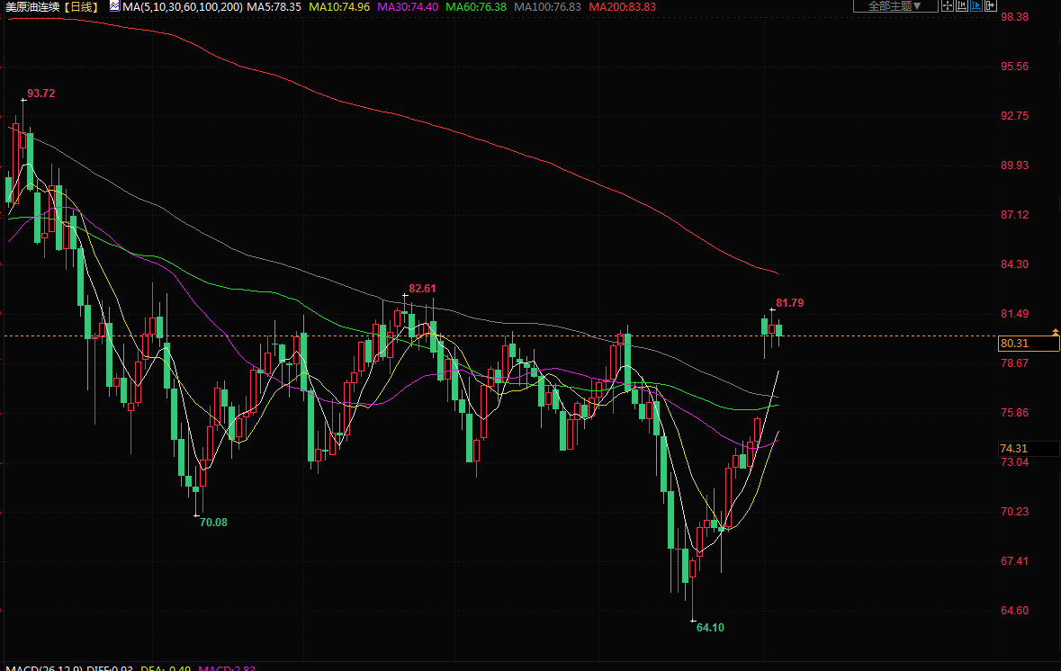 商品收盘情况:布伦特原油期货收涨0.1%,报每桶84.99美元;美国原油期货收跌0.1%,报每桶80.61美元。美国期金结算价报2035.60美元,下跌0.1%