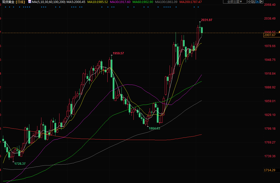 本周迄今,避险黄金已经上涨2%以上,突破了关键的2000美元水平,此前油价在石油输出国组织(OPEC)和盟友组成的OPEC+联盟减产的冲击下急升,且数据显示美国服务业放缓,职位空缺减少。