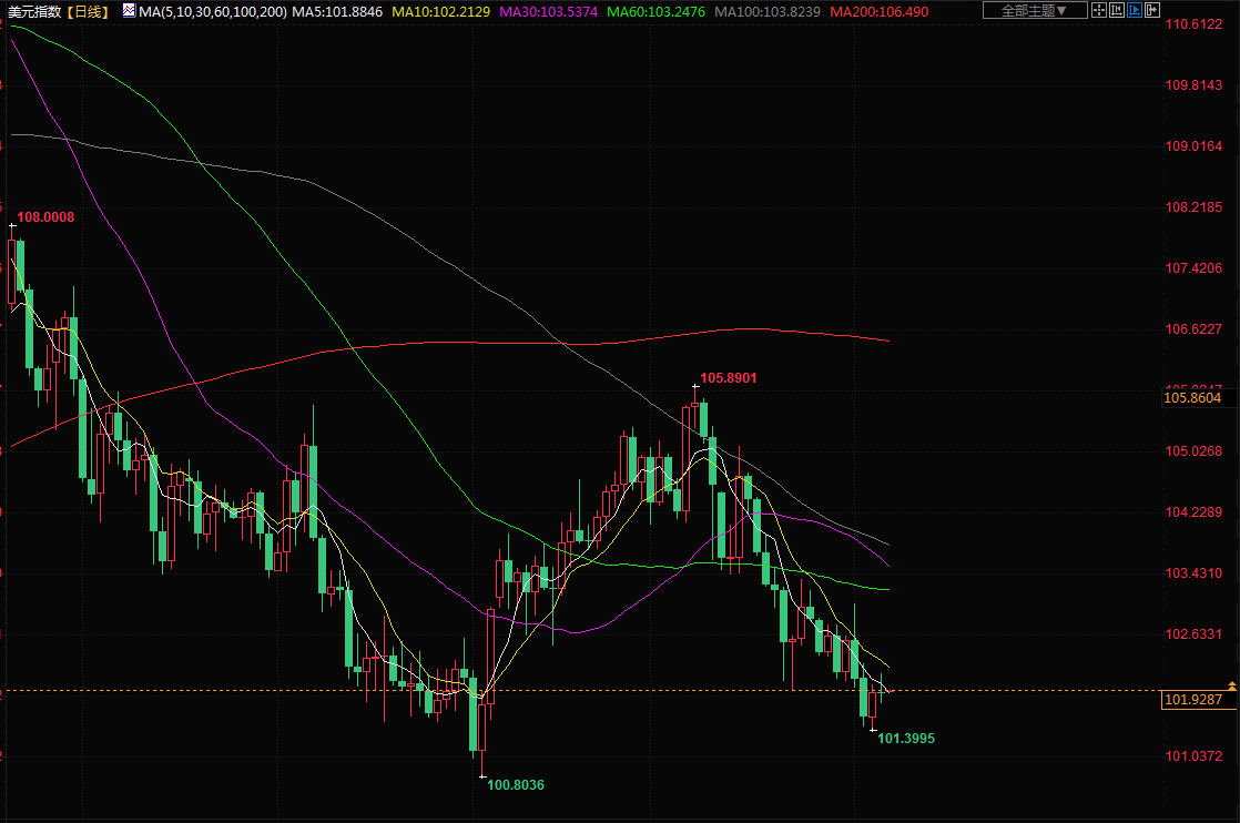 美元指数下跌0.1%,报101.81,本周稍早触及两个月最低,部分归因于美债收益率下降。