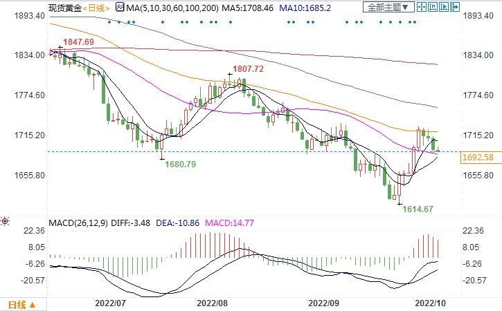 现货黄金报 1691.54美元/盎司