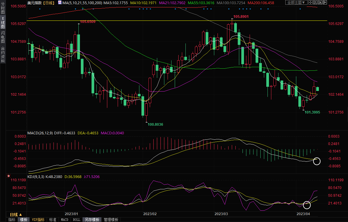 美元指数周一尾盘上涨0.44%,收报102.57,此前曾达到102.81,为4月3日以来最高。技术面来看,美元指数短线看涨信号显著增强,短线有望延续反弹走势,这可能会继续压制金价走势。不过,周二美元指数小幅走弱,目前下跌0.2%,交投于102.36附近。