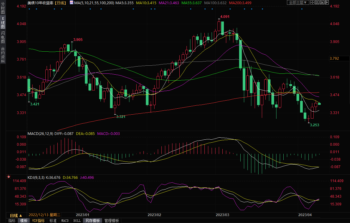 周一,10年期国债收益率上涨3.4个基点至3.417%,为连续三个交易日收涨,短线来看,美债收益率存在进一步反弹机会,也偏向进一步打压金价。美国30年期国债收益率周一上涨2.5个基点至3.628%。反映利率预期的美国两年期国债收益率周一攀升至4.006%。债券投资者继续监控银行系统的状况,有迹象表明金融压力正在缓解。美联储关于美国商业银行资产和负债的数据显示,在截至3月29日的一周内,所有商业银行的存款在非季节性调整的基础上从一周前向下修正的17.31万亿美元上升至17.35万亿美元。