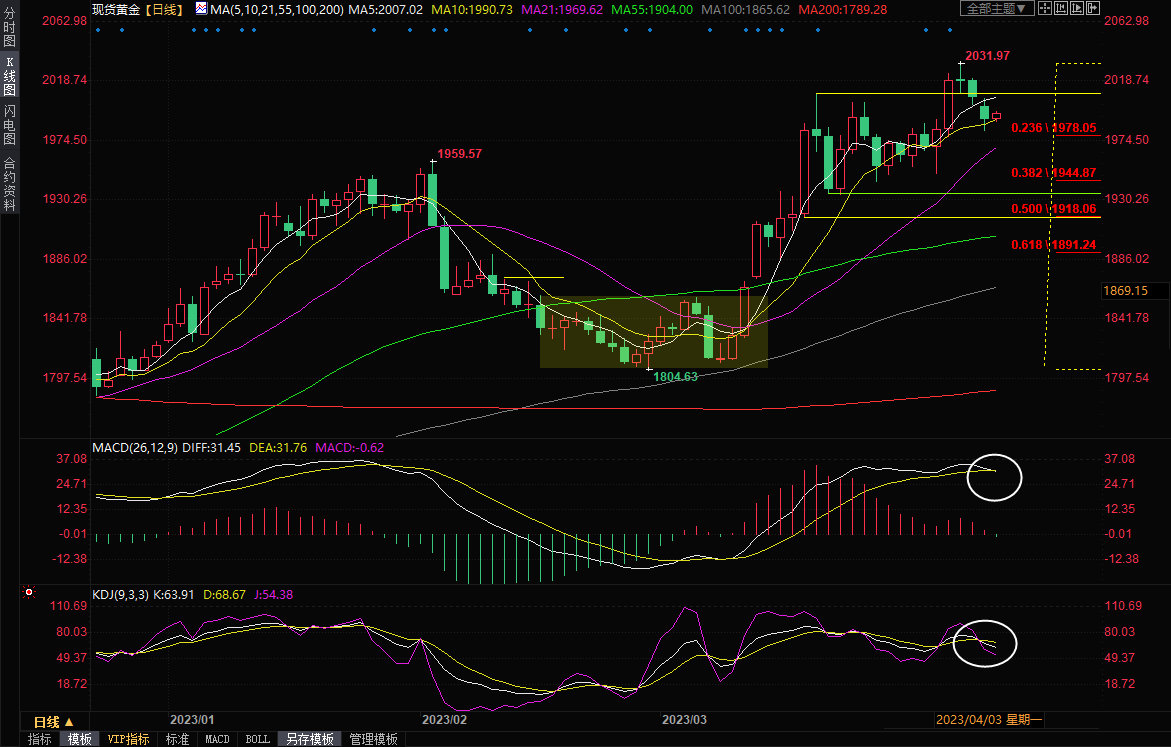 短线而言,金价仍有进一步下行风险,建议关注21日均线1969.60附近支撑,但中长线多头仍有重拾涨势的机会,要言见顶还为时过早。本交易日经济数据较少,重点关注芝加哥联储主席古尔斯和费城联储主席哈克的讲话,这两位官员都是2023年的票委。