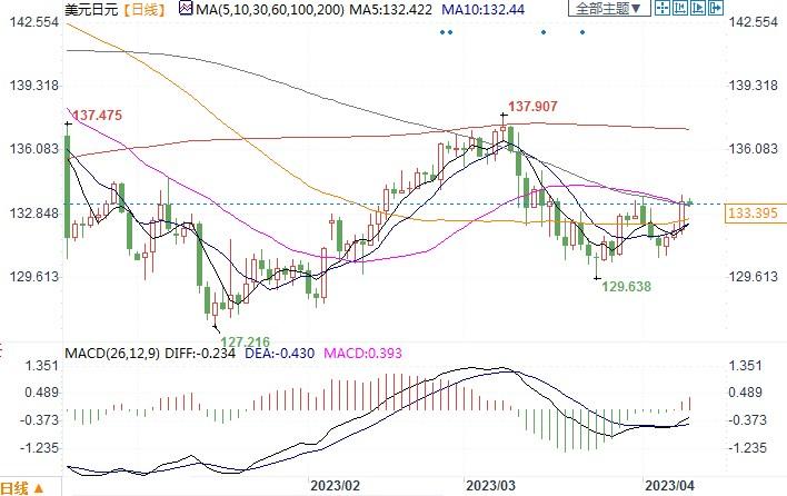 美元兑日元报133.43/44