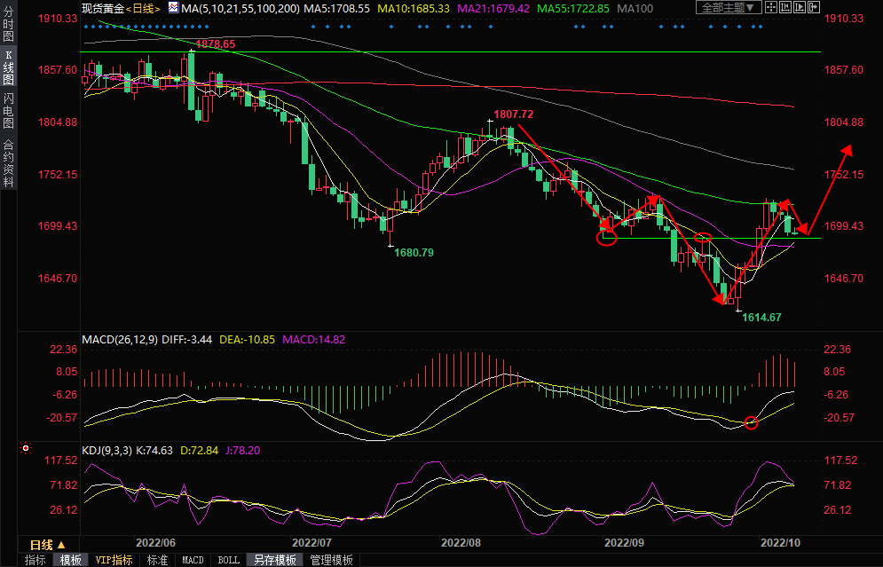 整体来看,金价短线仍受到强劲非农数据和美联储激进加息预期的打压,金价短线仍有下行风险,关注9月21日高点1687.95和10日均线1685.30附近支撑,若能守住1685附近支撑,则多头后市仍有机会,上方关注55日均线1722.84附近阻力,若能顶破该阻力,则增加后市看涨信号;若下破10日均线1685附近关键支撑,则增加短线下行风险。北京时间10:22,