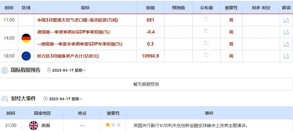 ①4月17日(周一)关键字:德国第一季度季调后GDP季率初值