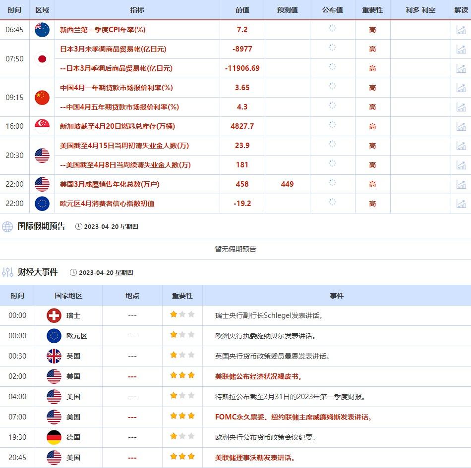 4月20日,美联储公布经济状况褐皮书。此外,纽约联储主席威廉姆斯发表讲话,美联储理事沃勒发表讲话,也需引起投资者重视。