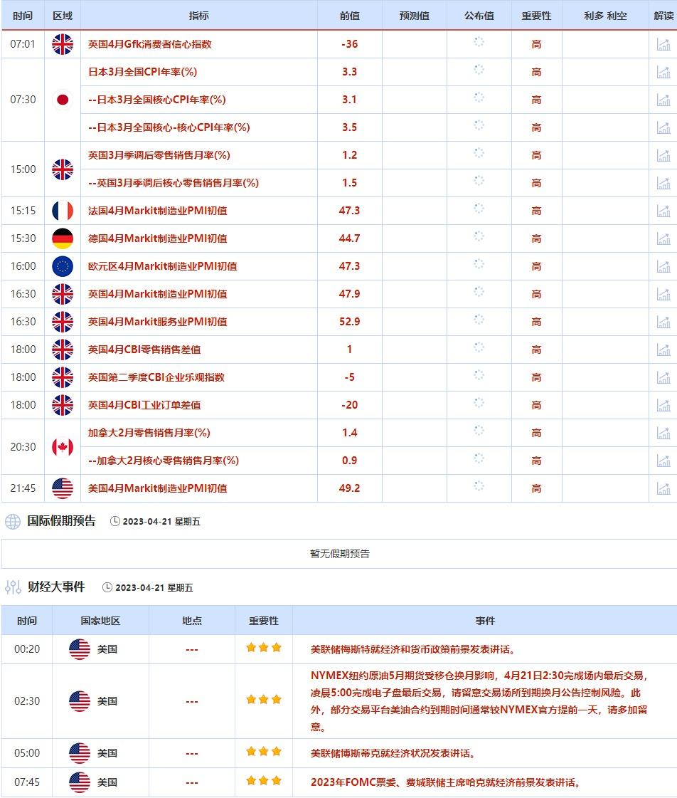 4月21日,梅斯特就经济和货币政策前景发表讲话,博斯蒂克就经济状况发表讲话,投资者也需保持关注。