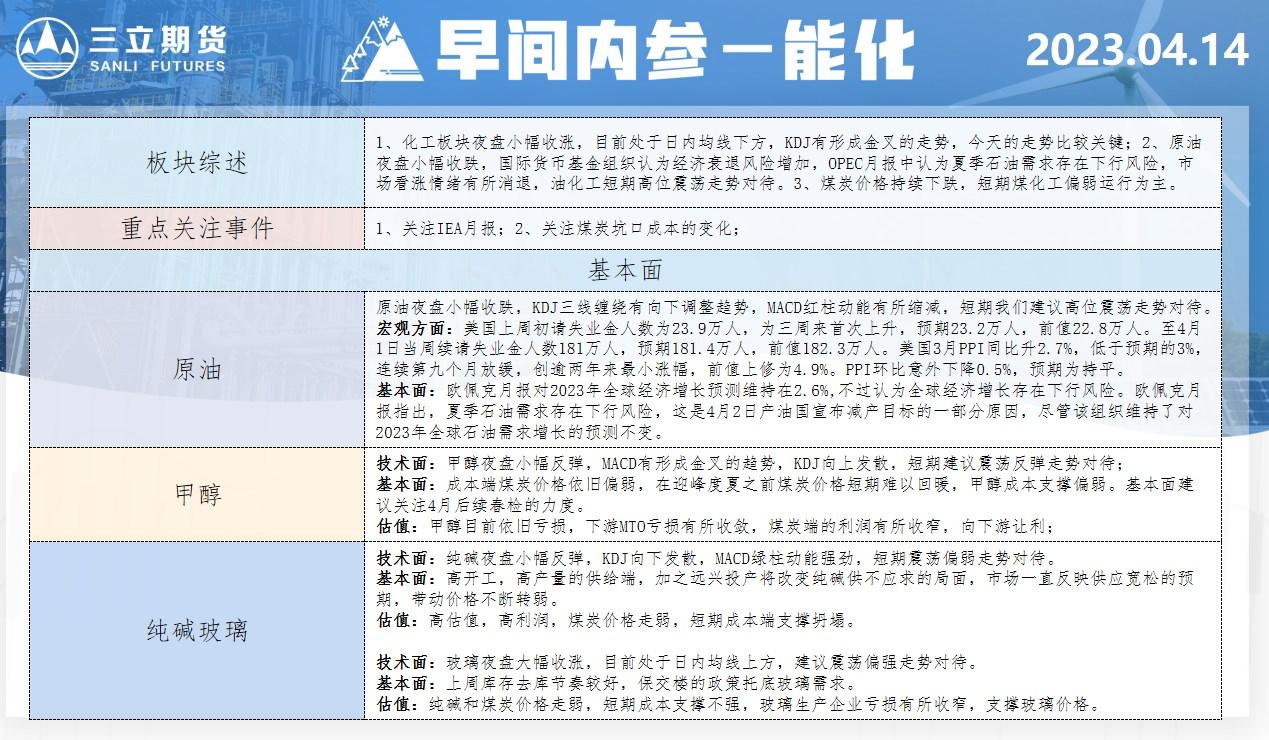 标题:三立期货4月14日早间内参——能化