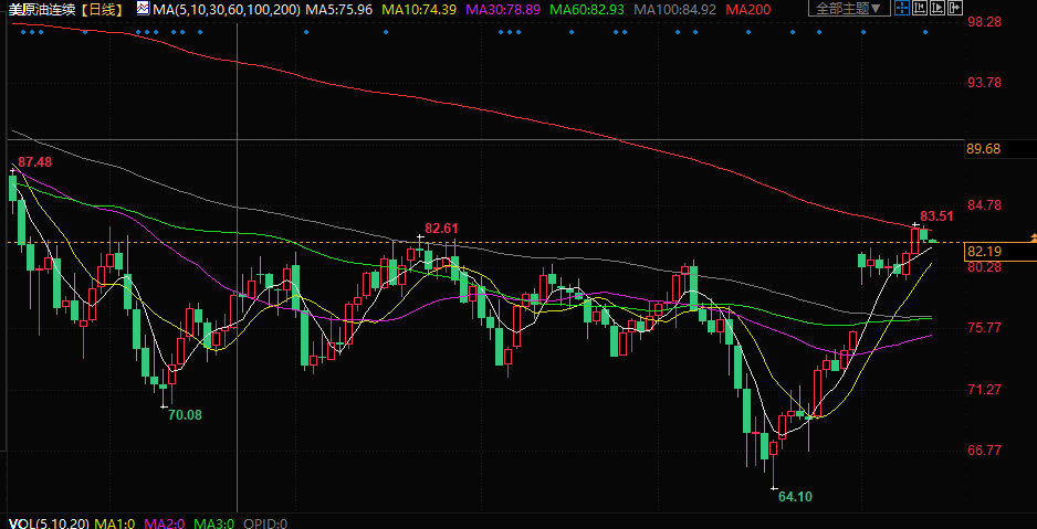 美原油交投于82.30美元/桶附近;油价周四下跌1%,因OPEC的报告激起了人们对夏季需求的担忧,且经济衰退担忧情绪有所回升。