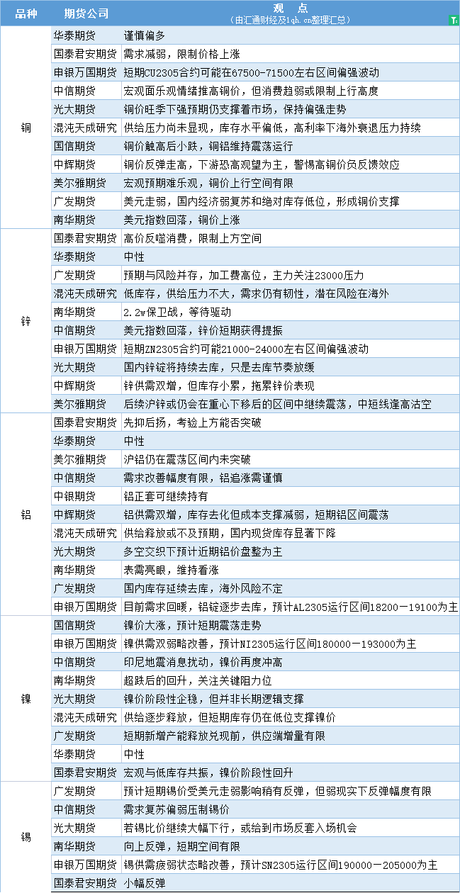 标题:期货公司观点汇总一张图:4月17日有色系(铜、锌、铝、镍、锡等)