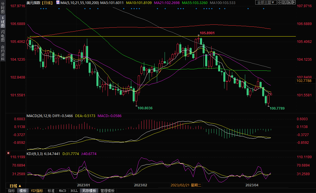 美元指数上周五上涨0.57%,收报101.53,此前一度跌至100.78,为去年4月以来最低。周一亚市,