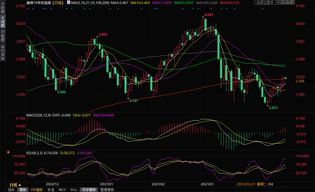 美国10年期国债收益率上周五攀升7.4个基点至3.522%,盘中最高触及3.537%,为4月4日以来最高。上周,10年期债收益率累计上涨4.11%,创下2月中以来的最佳涨幅。短债方面,美国两年期国债收益率上周五也升至近两周高位,收报4.103%。