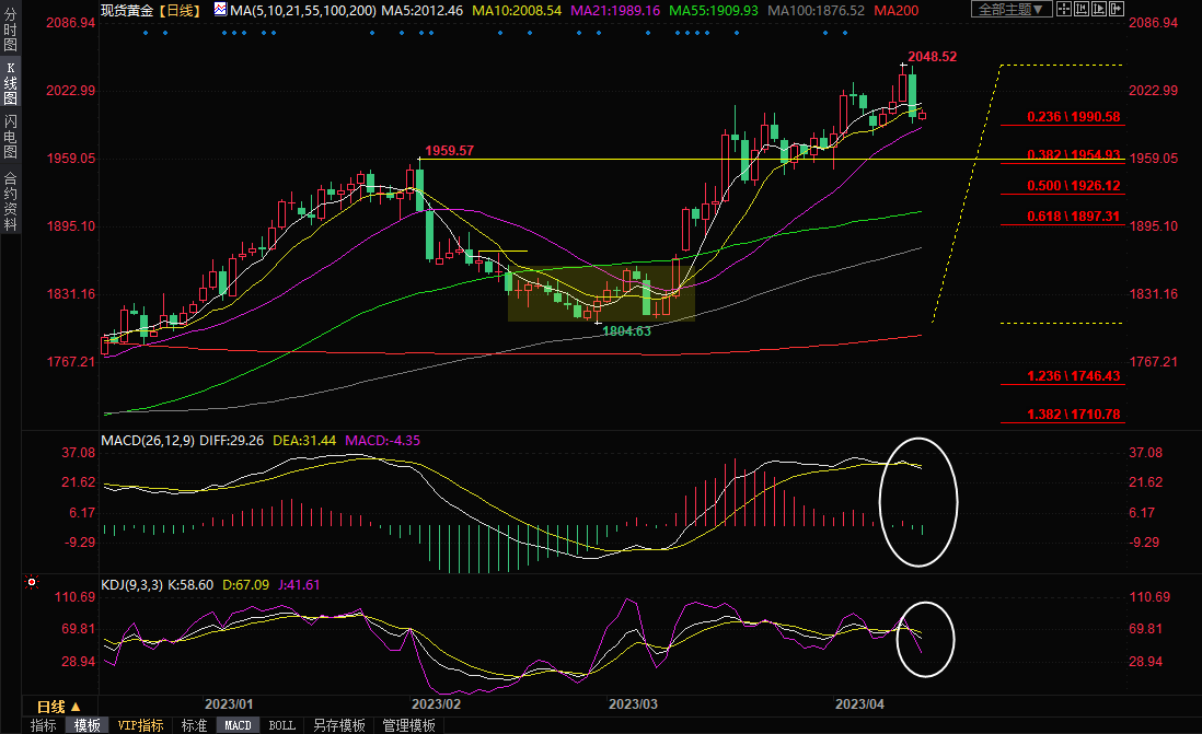 整体来看,上周以来,多位美联储官员向市场传递了5月份将进一步加息的信号,沃勒的讲话和零售销售数据成了“最后一根稻草”,帮助美元守住关键支撑并展开反弹,金价则从2050关键心理关口大幅回落,技术面信号显示金价初步见顶可能性较大,后市面临较大的进一步下行风险,留意2月2日高点1960关口附近支撑。当然,市场对美联储年内的降息预期和银行业动荡担忧仍有望吸引逢低买盘,金价可能会震荡调整后再延续回调走势,上方留意2020和2032附近阻力。北京时间10:37,