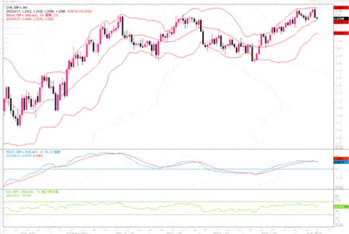 英镑兑美元周五一度触及2022年6月以来的最高水平1.2545美元,然后回落0.81%,收盘于1.2415。上周五由于美国一季度零售销售数据整体平均水平还是呈增长之势,美元低位反弹,从而压制了英镑的攀高气势。市场将密切关注本周三公布的英国通胀数据,以寻找有关货币政策前景的线索;而就业市场数据(周二)、零售销售数据(周五)和标普全球/CIPS采购经理人指数初值(周五)也可能影响英镑走势。上述本周英国将要公布的数据,将会直接影响到5月英央行加息的预期。如果数据皆显强劲,则提高加息预期概率。英镑也会由此获得支撑。当然了,同时期还要看来自美国方面的数据,若也同样表现增长强劲,则美元有极大可能继续反弹。而英镑必然间接受到抑制而走低。仅从技术图表来看,日线级别图上,镑美目前尚能保持在20日均线上方,自3月初以来形成的上升通道暂时保持完好。但技术指标MACD似乎有粘连成死叉迹象,要警惕防范镑美继续作下落调整的走势出现。上行的话,初步目标将是1.25。而下行的话,1.22附近是比较强硬的支撑水平所在。