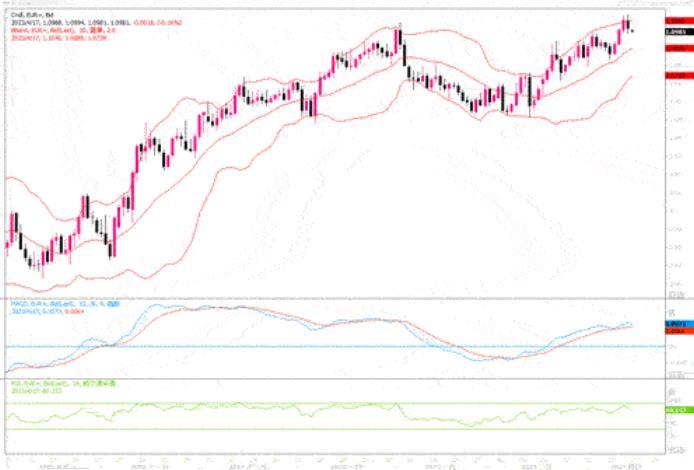 欧元兑美元在日线图上,尚能继续保持在短期均线上方,技术指标也未出现转向迹象,若经过高位回落调整后能守稳于1.0860-1.09区域之上,则欧元仍又机会沿着当前形成的上升通道继续攀升。