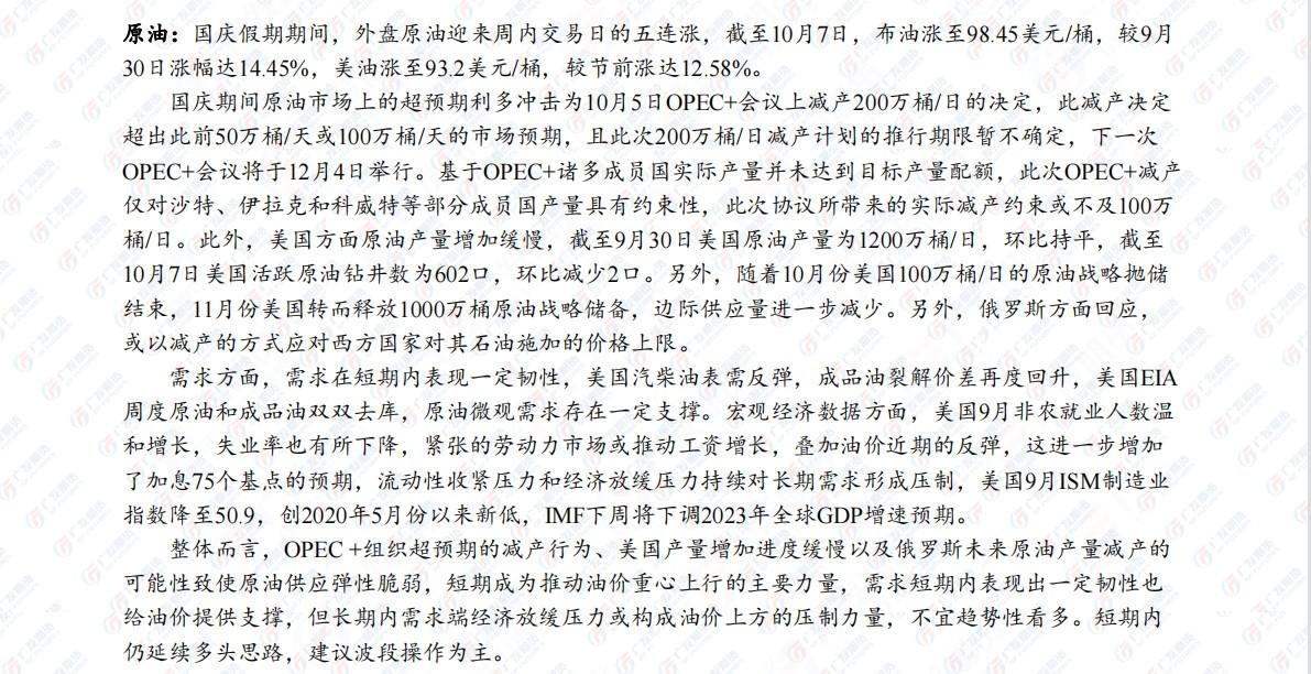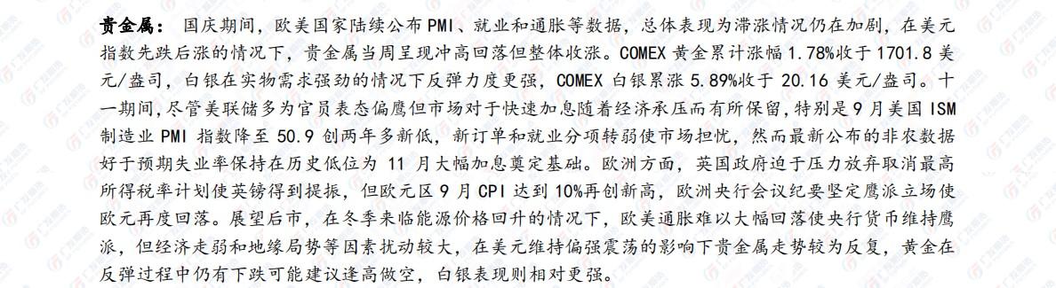 标题:广发期货国庆假期行情回顾及节后展望:黄金仍可能下跌,生猪保持多头思维