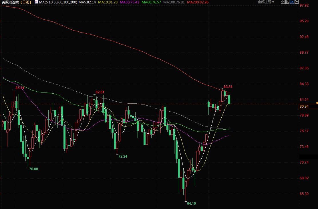 商品收盘情况:布伦特原油期货下跌1.8%,收于每桶84.76美元;美国原油下跌2.1%,收于每桶80.83美元。美国期金收于2007美元/盎司,下跌0.4%。