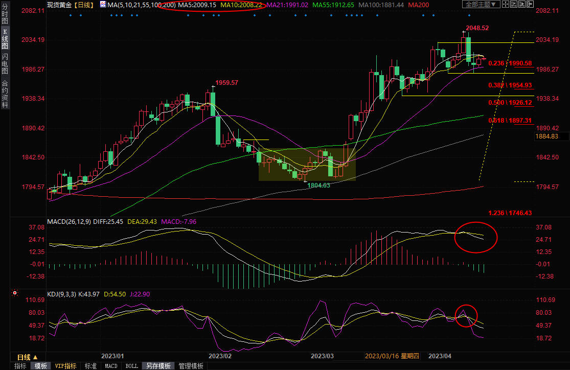 整体来看,虽然周二美元指数小幅回落,给金价提供了一些支撑,但这主要是由于中国经济数据表现靓丽,打压了美元的的避险需求,但美元仍守在5日均线上方,而且市场避险情绪的回落也降低黄金的吸引力。此外,美国经济数据也相对强劲,美联储官员的讲话仍偏向鹰派,短线而言,5月份加息预期料将笼罩市场,金价仍受到5日均线和10日均线压制,MACD和KDJ高位死叉信号延续,技术面短线看空信号仍然较强,后市仍有进一步下行风险,金价面临震荡下破1980关口支撑的风险。北京时间10:34,