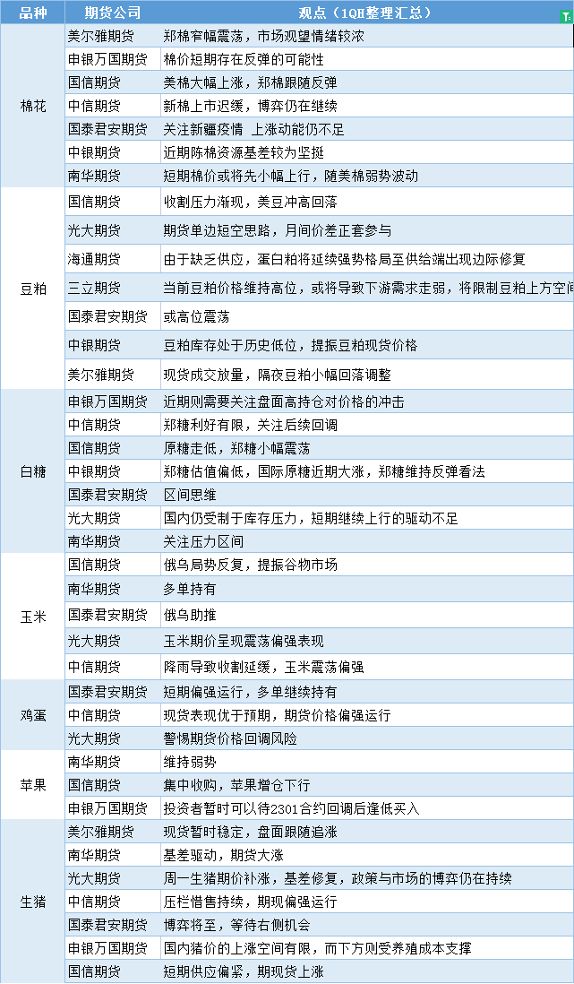 标题:期货公司观点汇总一张图:10月11日农产品(棉花、豆粕、白糖、玉米、鸡蛋、生猪等)