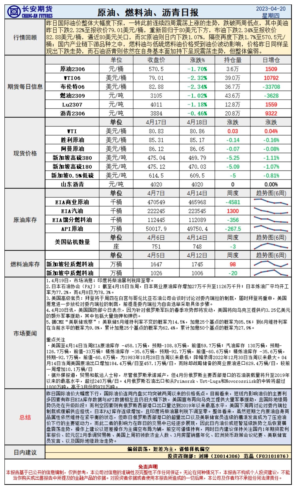 标题:长安期货4月20日原油报告:俄油减产但西岸大量出口,携手美国加息预期压制油价