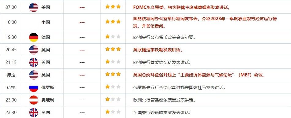 后续及时更新的财历数据请关注:【汇通财经4月20日财经日历】