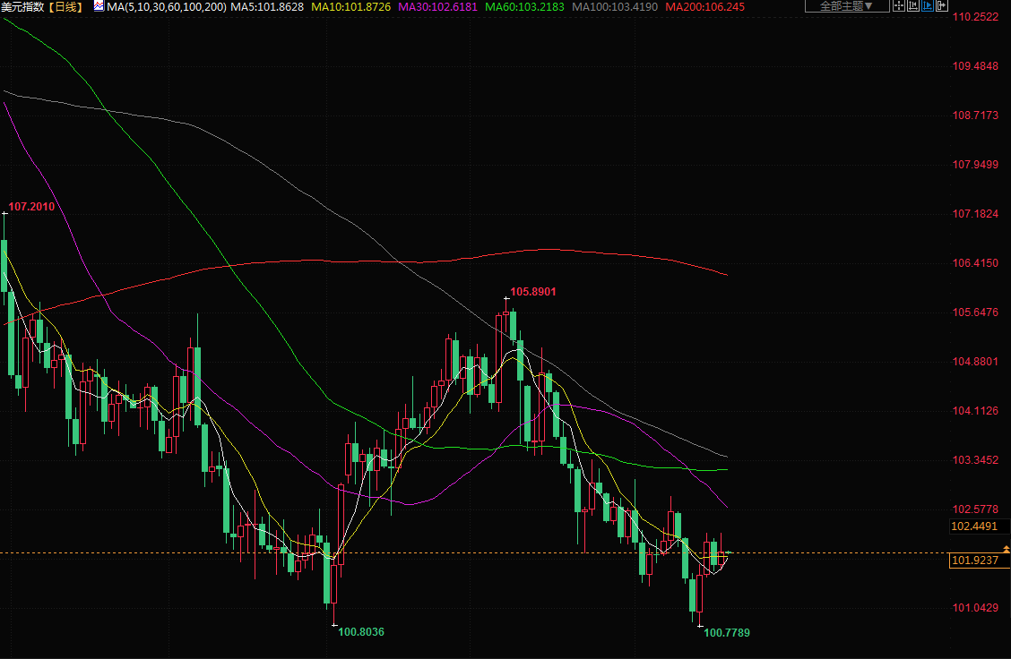 美元指数涨0.206%,因为市场对美联储今年晚些时候会降息持更加怀疑的态度。